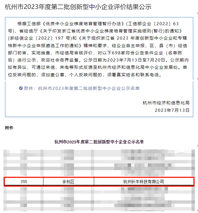 近日,杭州市公布了2023年第二批创新型中小企业名单,杭州长牛科技凭借自身较高的专业化水平以及较强的发展潜力成功获得“创新型中小企业”称号。从科技研发到创新生产,推动长牛科技高质量发展,助力企业在创新创造领域迈上新台阶!