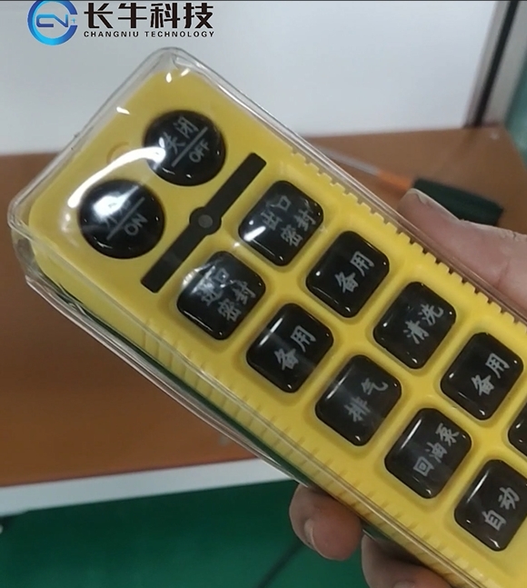 油泵综合性能测试台由软件控制系统和油泵密封水试台两部分组成,油泵密封水试台是装油泵的设备,为了方便操作,这里配置了一个遥控器来控制油泵: