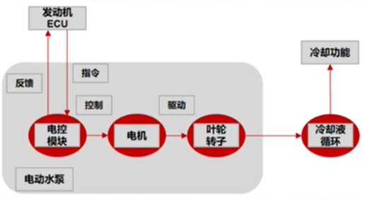 电子水泵是冷却液的驱动元件,使冷却液在管路中循环起来。相较于传统的机械水泵,电子水泵可以根据收到的指令信号,调整电机转速,精确调整输出流量。