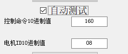 勾选“自动测试”复选框,输入电机控制和电机ID的十进制数