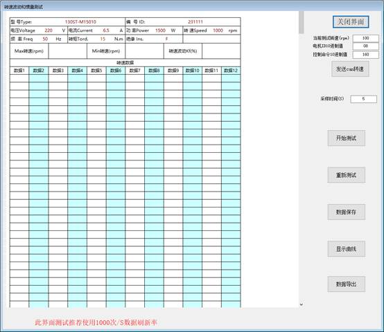 进入伺服电机检测软件的转速波动和惯量测试界面,如图: